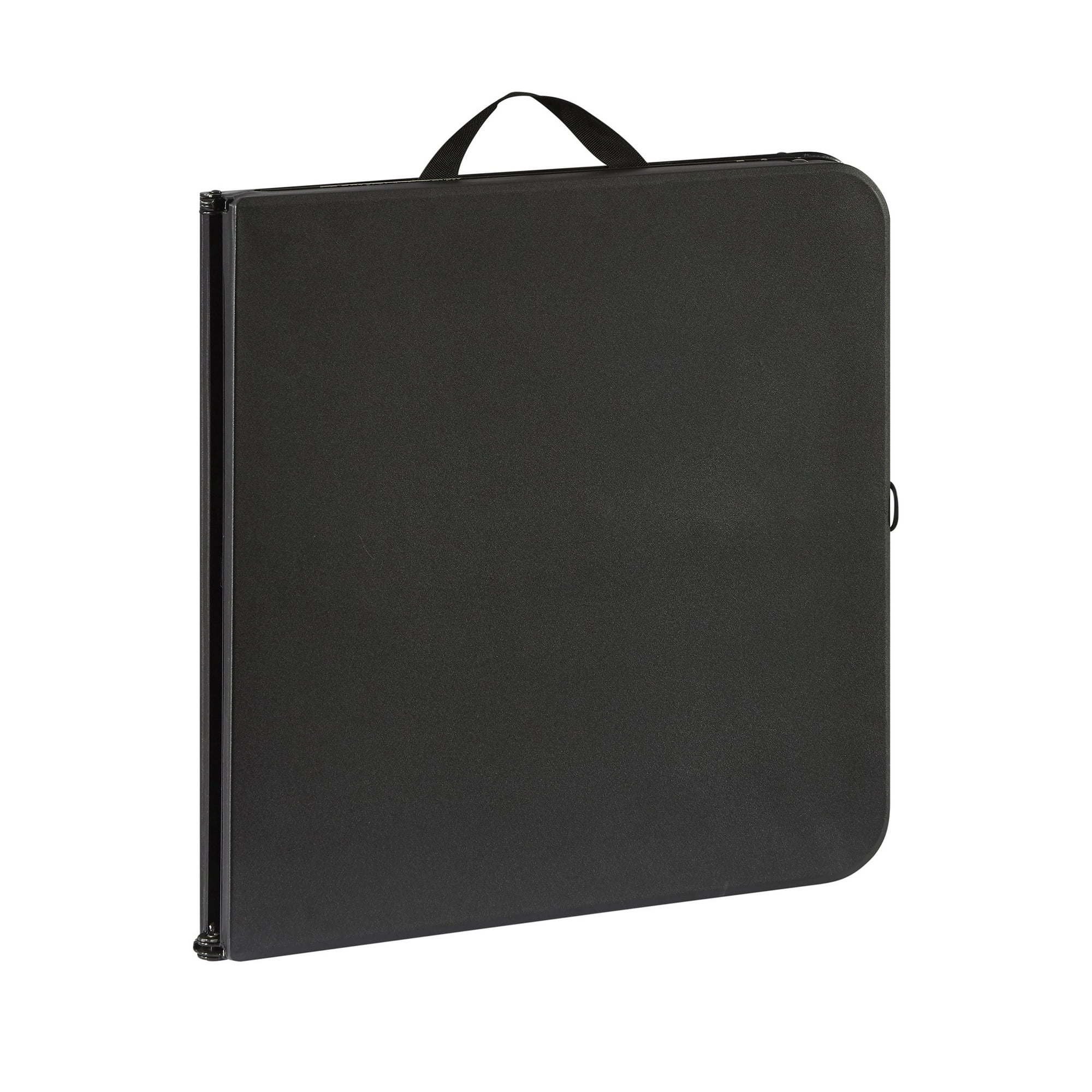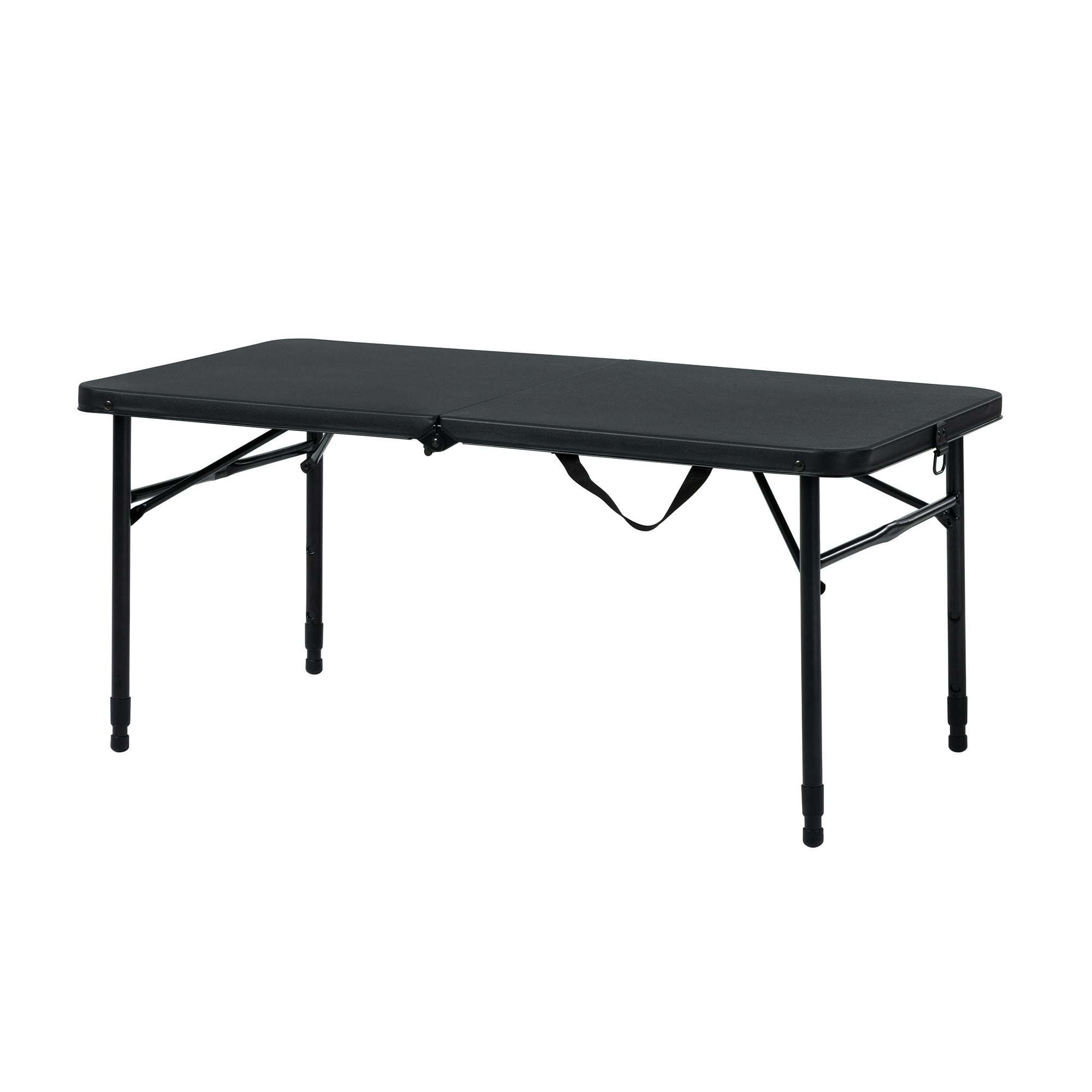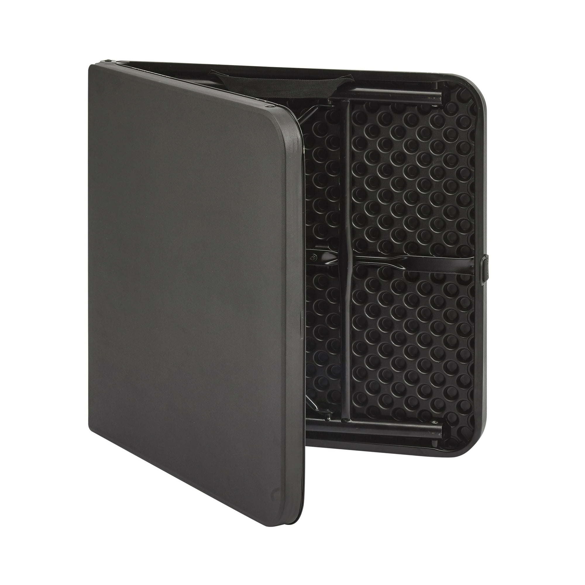 Provide all of the table spaces that you need in all kinds of settings with the 40" Fold-in-Half Table in Rich Black. This versatile rectangular table is sturdy and durable, made with reliable materials, folds for easy storage and transportation, and adjusts to three different heights. When you're finished using it, just fold in the metal legs, fold the table in half, and your new compact table is ready for transport! Its classic black color is sure to fit in at any gathering in any setting, and its spacious expanded 40" long table-top is ideal for holding a wide variety of foods, crafts, or whatever items you are working with! It's great for everyday use both indoor and outdoor, as a serving table, craft supply table, outdoor meal table, or for whatever purposes you may need. The plastic tabletop is easy to clean with no fuss just wipe it down with a damp cloth, and it will look as good as new! The carrying handle makes it perfect for taking on the go, for outdoor barbecues, game nights, school activities, parties, or tailgating events. The tabletop is large enough to be able to sit the whole group down around the table, so all of your friends and family can be included.