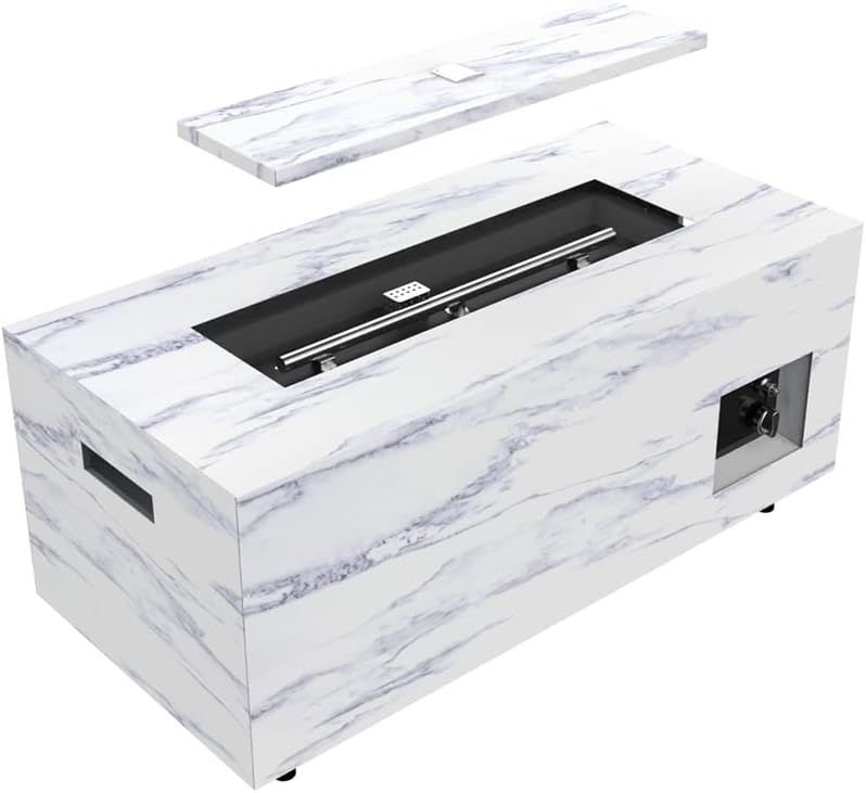3. Multi-Function - Put the Lid to get more table space. The size of the Rectangle tabletop is L 42" x W 20", which provides more space for drinks and foods. The gas firetable can be a patio dining table in your yard. Lava Rock makes the flames more interesting. You can also replace Lava Rock with Fire Glass to get colorful flame.