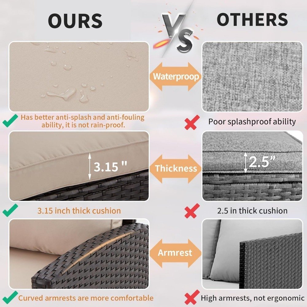 • [Exquisite Design & Versatile]The wicker patio furniture set combines the functionality and a refined classic style, easier to match any preexisting decor. This outdoor sectional set are light enough to move around and easy to be placed in an endless number of configurations. It's an indispensable décor to your porch, garden, lawn or yard.