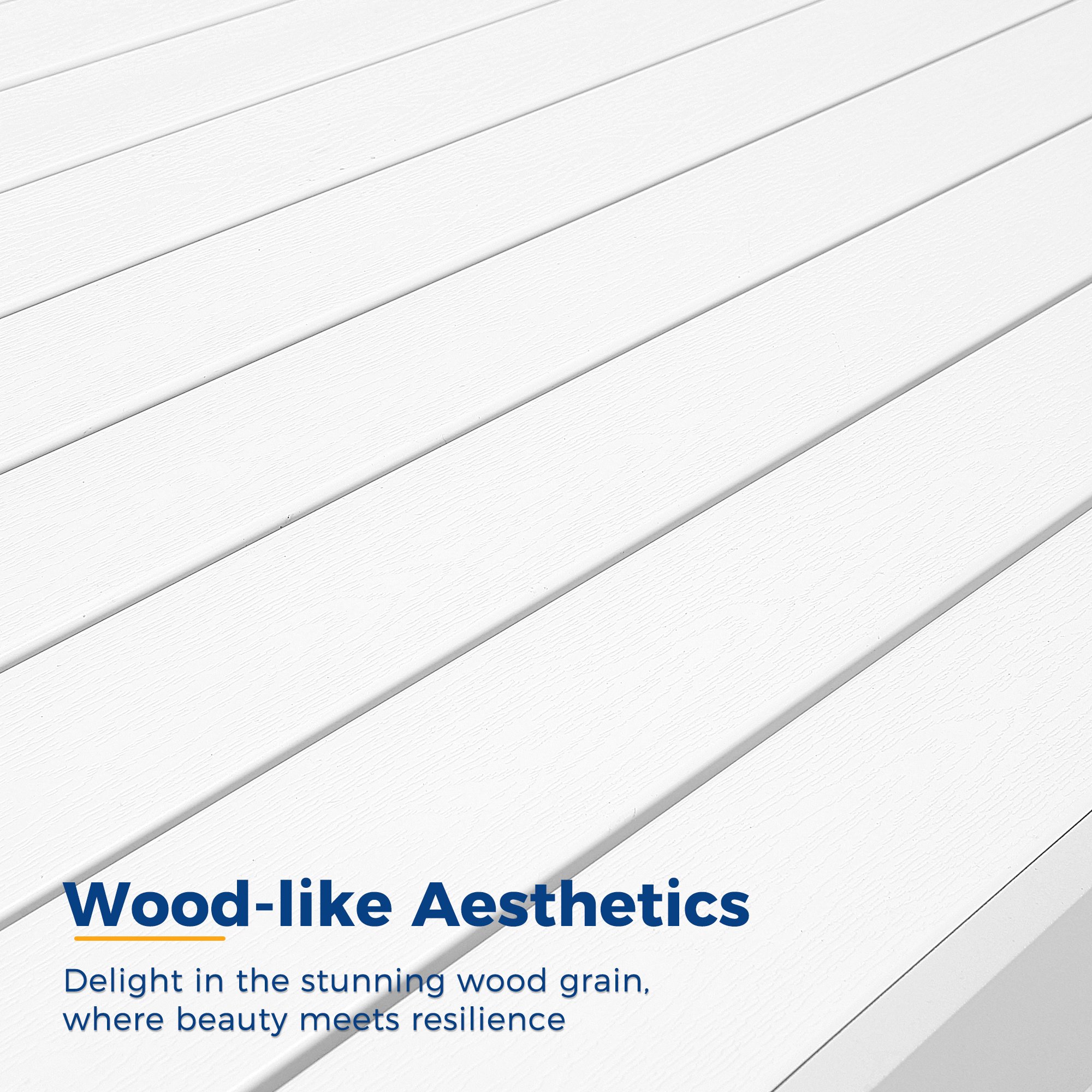 Easy Cleaning: This metal table is perfect for placing everyday items and is easy to clean. Simply wipe down the aluminum frame and WPC tabletop with a damp cloth or rinse with water for minimal maintenance and maximum enjoyment.