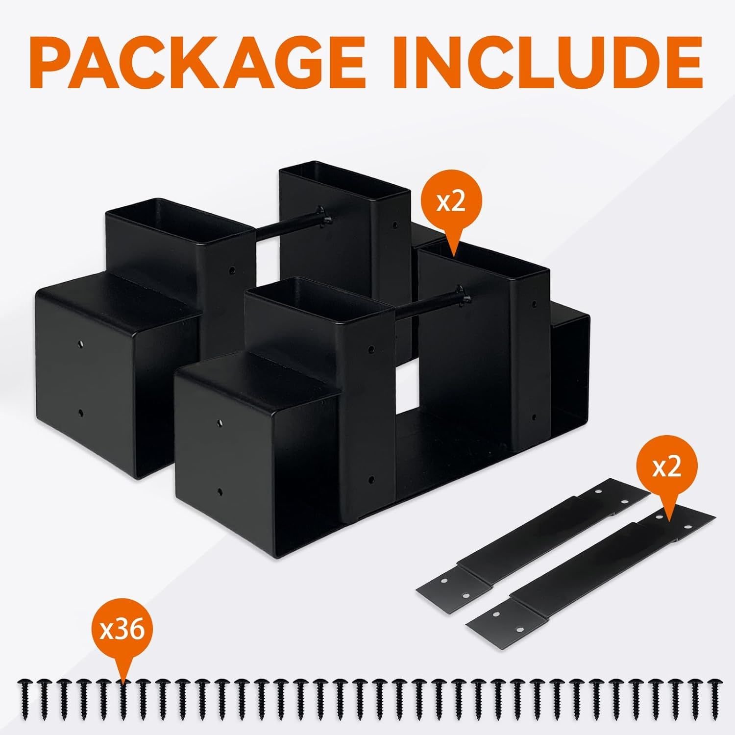 A pair of firewood log brackets with wood screws, 13.2" *3.7"*6". (Lumbers are not included).Made of sturdy 14GA steel plate,no sharp corners,welds are even and looking overall,generally well manufactured.Coated with electrostatic powder coated paint which gives it an extra layer of protection against the elements compared to raw iron.Brackets allowed for personalized board dimension cuts,this allows you to customize just how big you want your rack to be.Stack some fire woods in the house near the fire pit or store several bundles of wood in the garden.You have the choice.Has pre-drilled holes in case water gets inside, which causes the wood to rot.