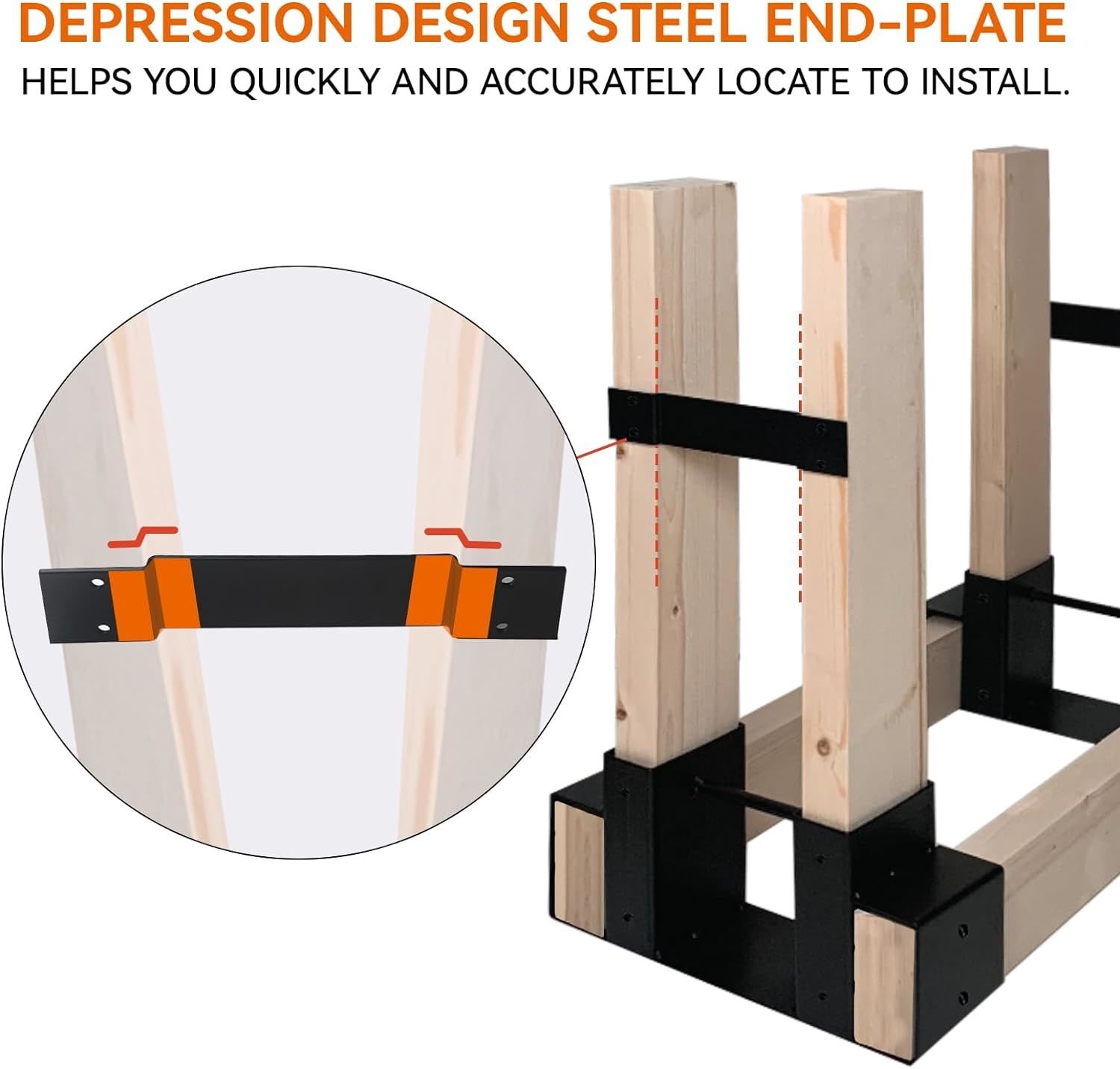 2.Durable and Easy to Build: 2.4kgs of each bracket was made of 2.6mm thickness heavy duty steel;no sharp corners,welds are even and looking overall,durable black powder coated to prevent rust and maintain long term durability.Each bracket has include 36 screws .(2 x 4s lumbers can be purchased at your local building supply store). Simply insert any length 2x4s lumber of your choice for an easy DIY log rack that assembles in minutes.