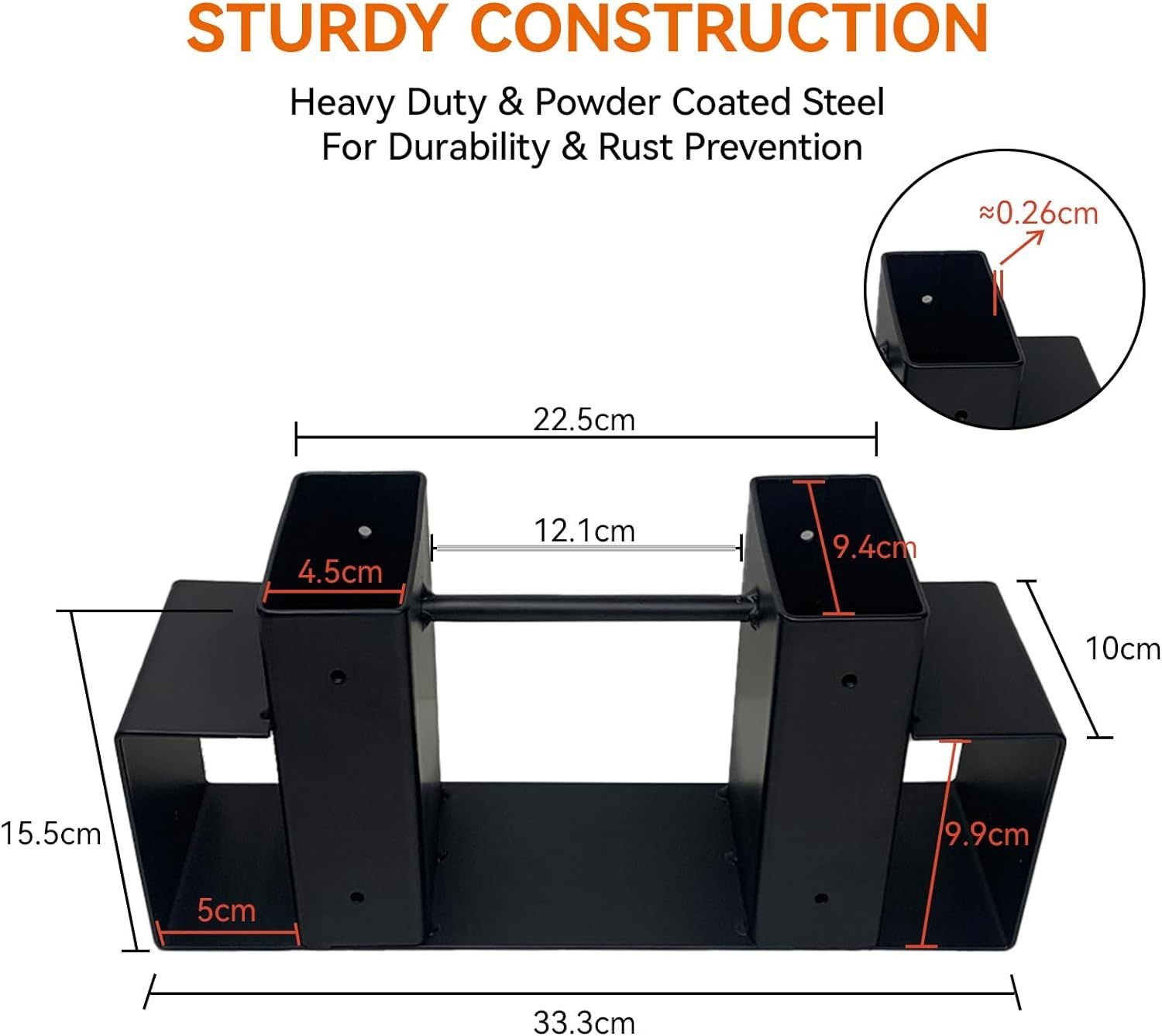 1.Customize Your Firewood Rack: each bracket is 33cm long x 15.5 cm wide x 10cm deep; Inside holes measure 9.4 x 4 x 15.5 cm.2x4 Lumber of any length can be used to build a sturdy log holder as long or as high as you desire to customize wood rack size.Effectively keep your split firewood or logs neatly stacked and off the ground for protection and origination.