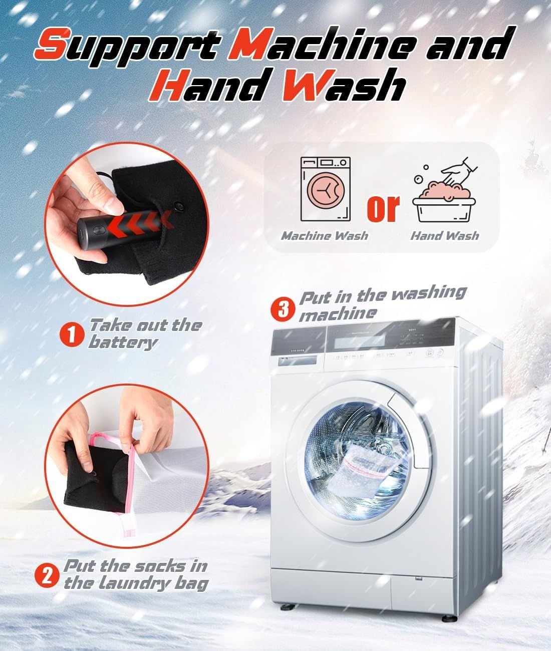 360° All-Round Heating- Our electric heating socks wrap heating elements around the toes, top and bottom of the foot, allowing you to experience all-round warmth. Let every inch of your feet be enveloped in soothing, even heat. No more cold spots or discomfort!