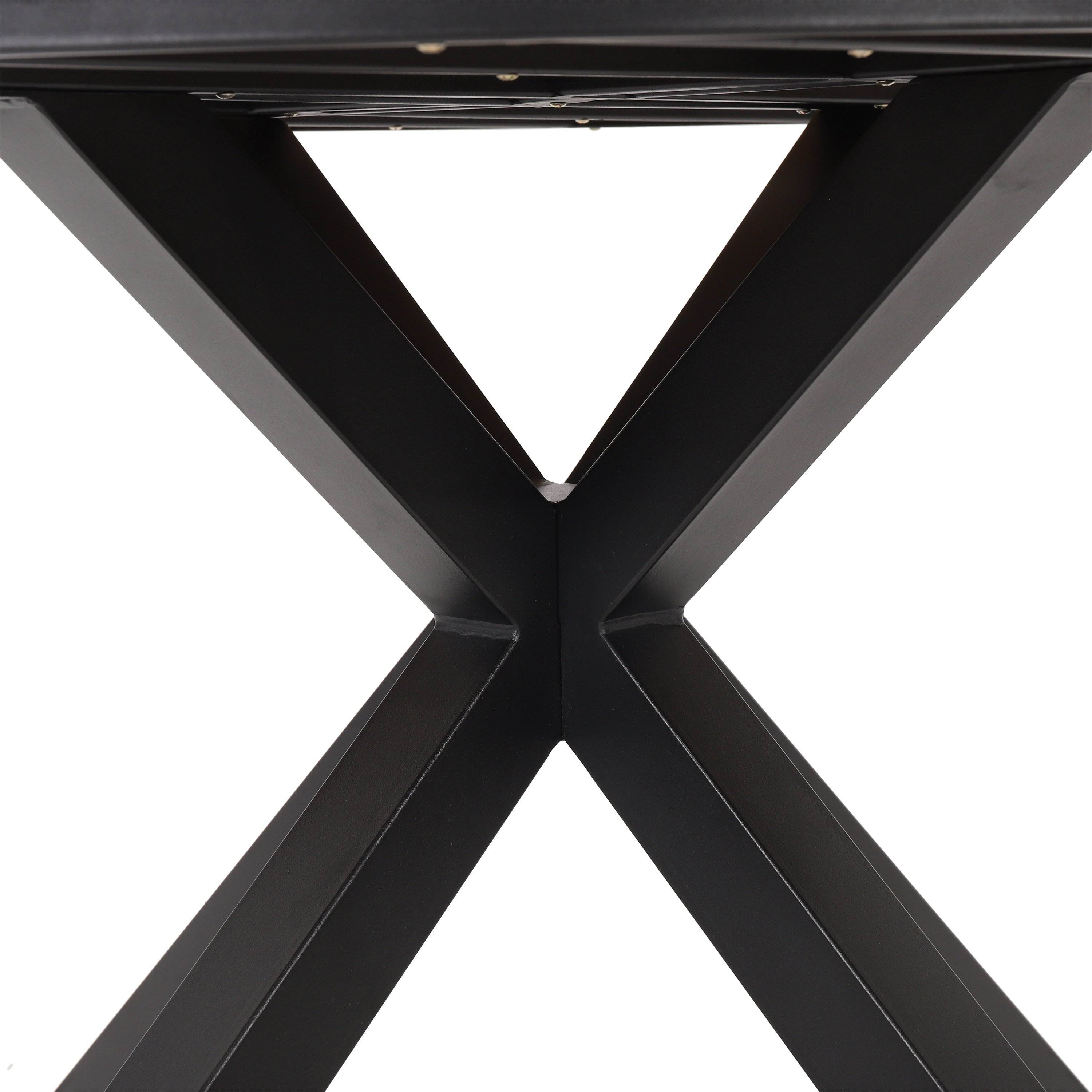 Set the tone of your next outdoor gathering with a well-chosen centerpiece. Crafted with a rich acacia wood top and a double X-shaped frame, our stunning dining table offers your backyard or patio space a sleek and stylish place to enjoy an afternoon barbeque or a hearty evening meal. This circular slat-panel table brings an impressive modern industrial atmosphere that can be easily matched with a variety of seating styles of your choice, making this the ideal addition to your home