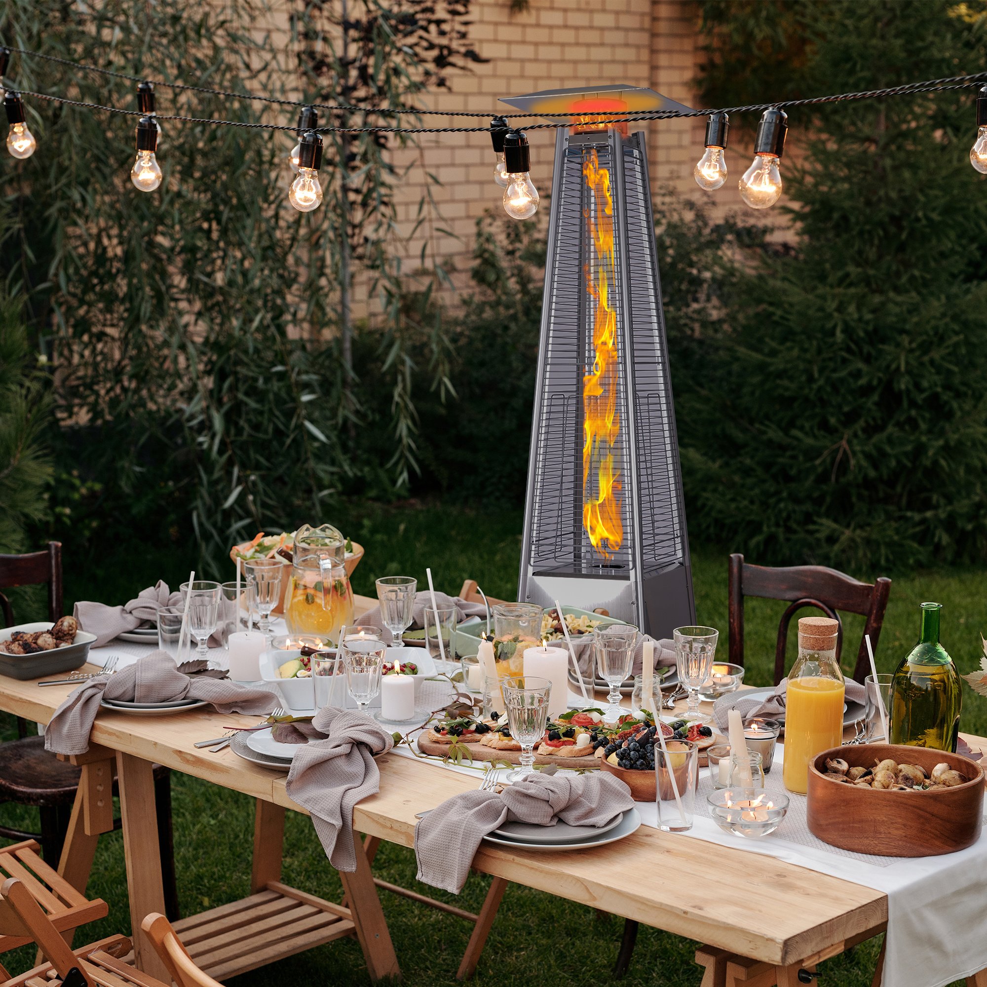 This Patio Pyramid Propane Space Heater has 46,000 BTU heat output in a circle. It only takes a few minutes to warm up quickly, which is a great heating solution for your outdoor socializing. With this heater, you can still enjoy the warm courtyard life when winter comes.