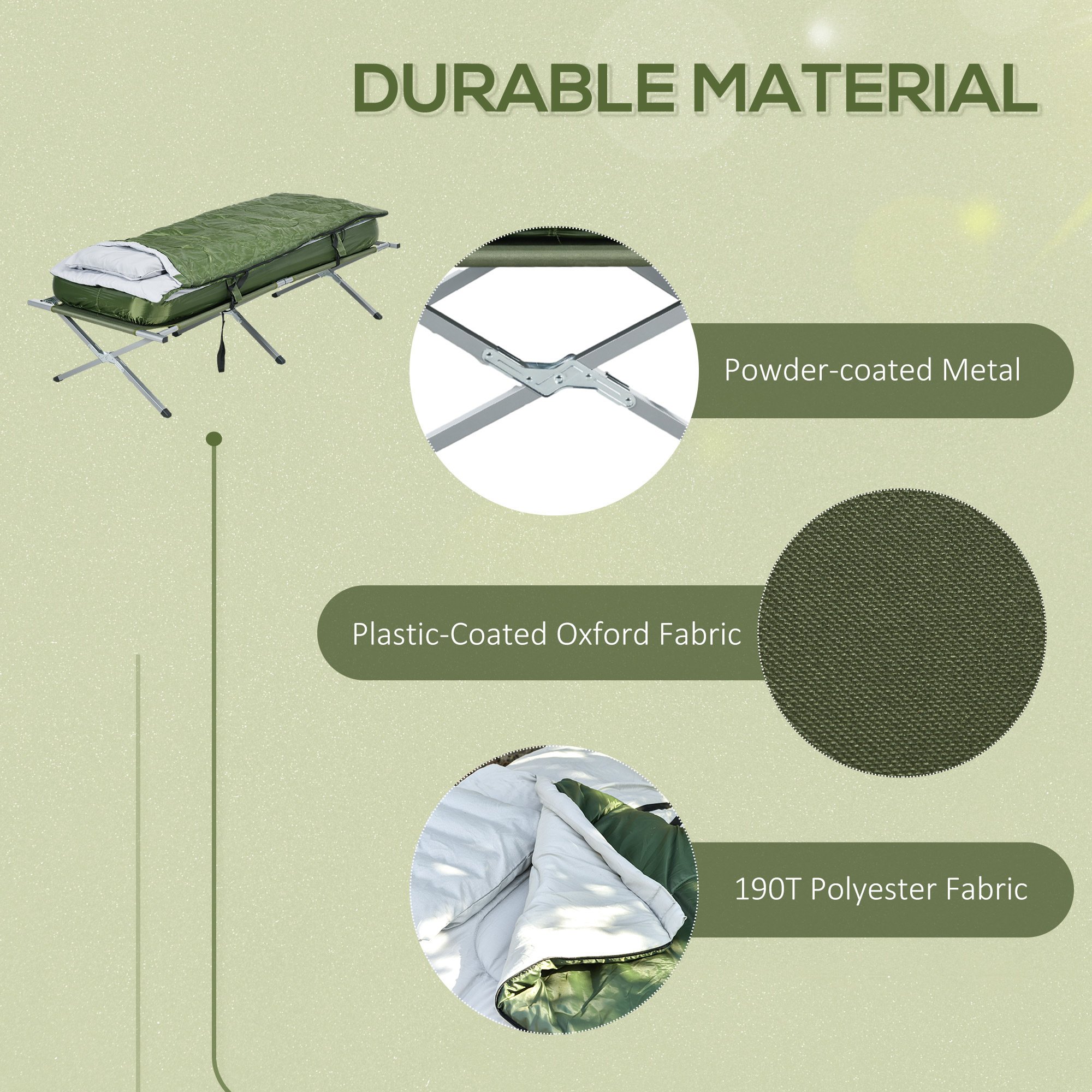 Outsunny Camping Cot, Outdoor Folding Bed Set with Mattress, Sleeping Bag, Pillow, and Carry Bag, Comfortable and Portable, for Travel Camp Beach