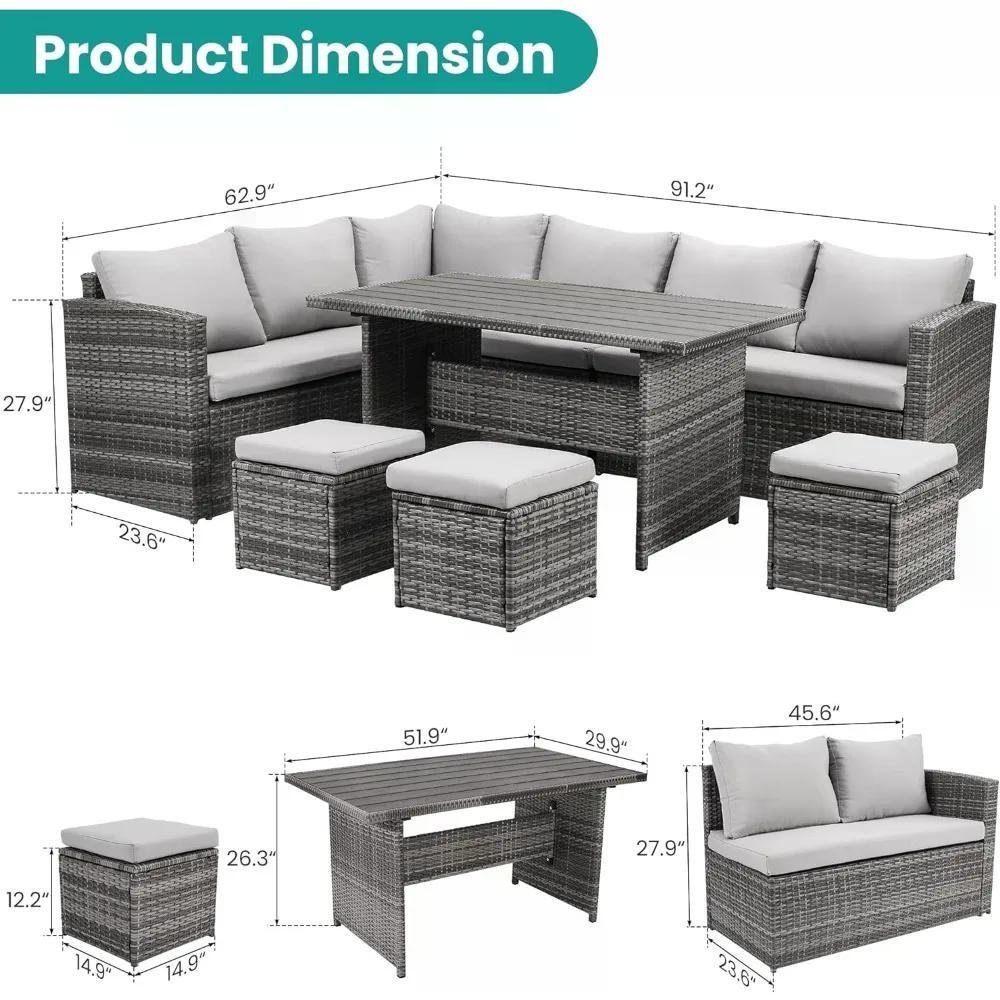 Patio Furniture Set, 7 Pieces Outdoor Patio Furniture with Dining Table&Chair,with Ottoman,Grey (Include Sofa Dust Cover)