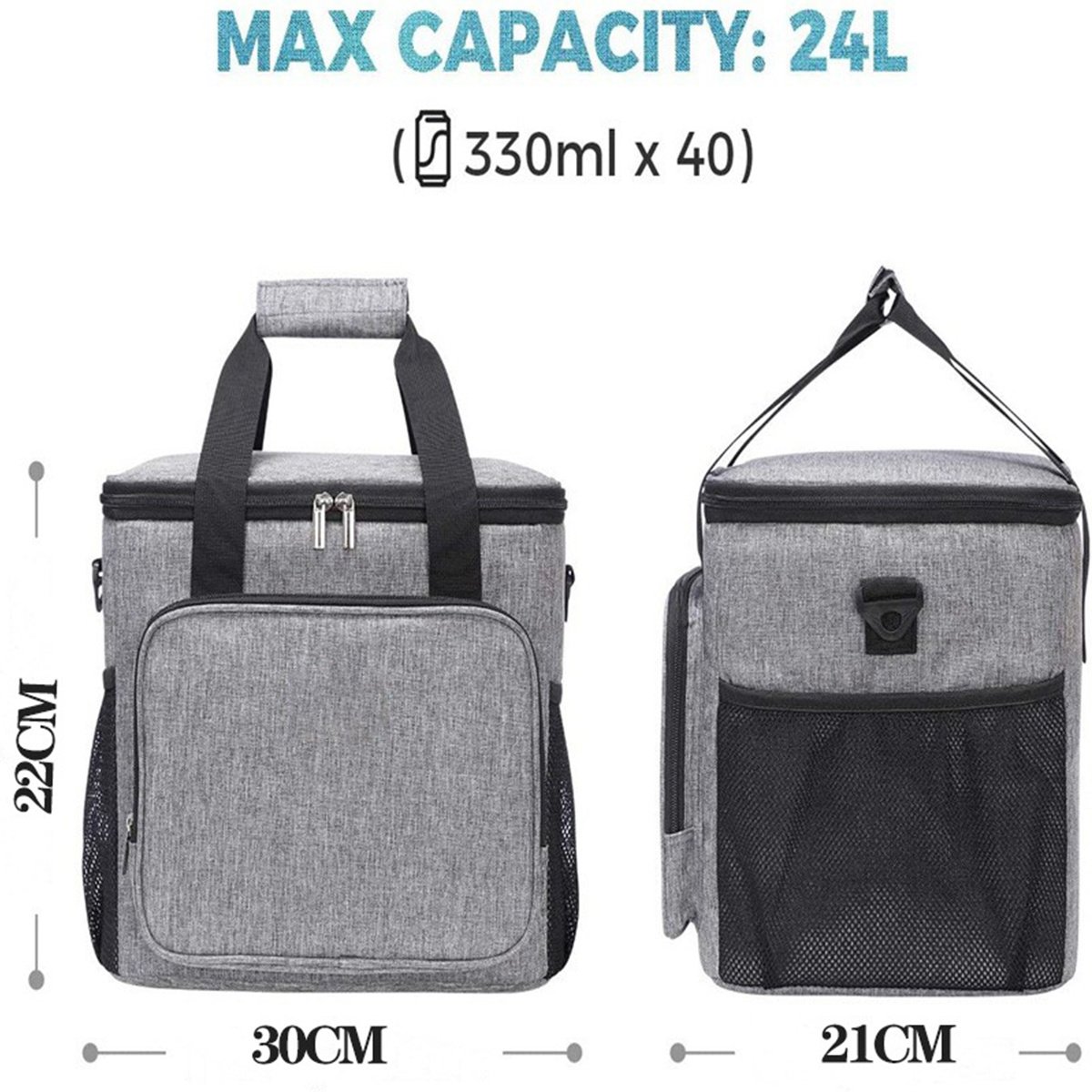 2.Parameter specifications: This insulation bag is available in black and gray for your choice. Measuring 30cm by 21cm by 22cm, it can even hold 40 cans of 330ml Coke!