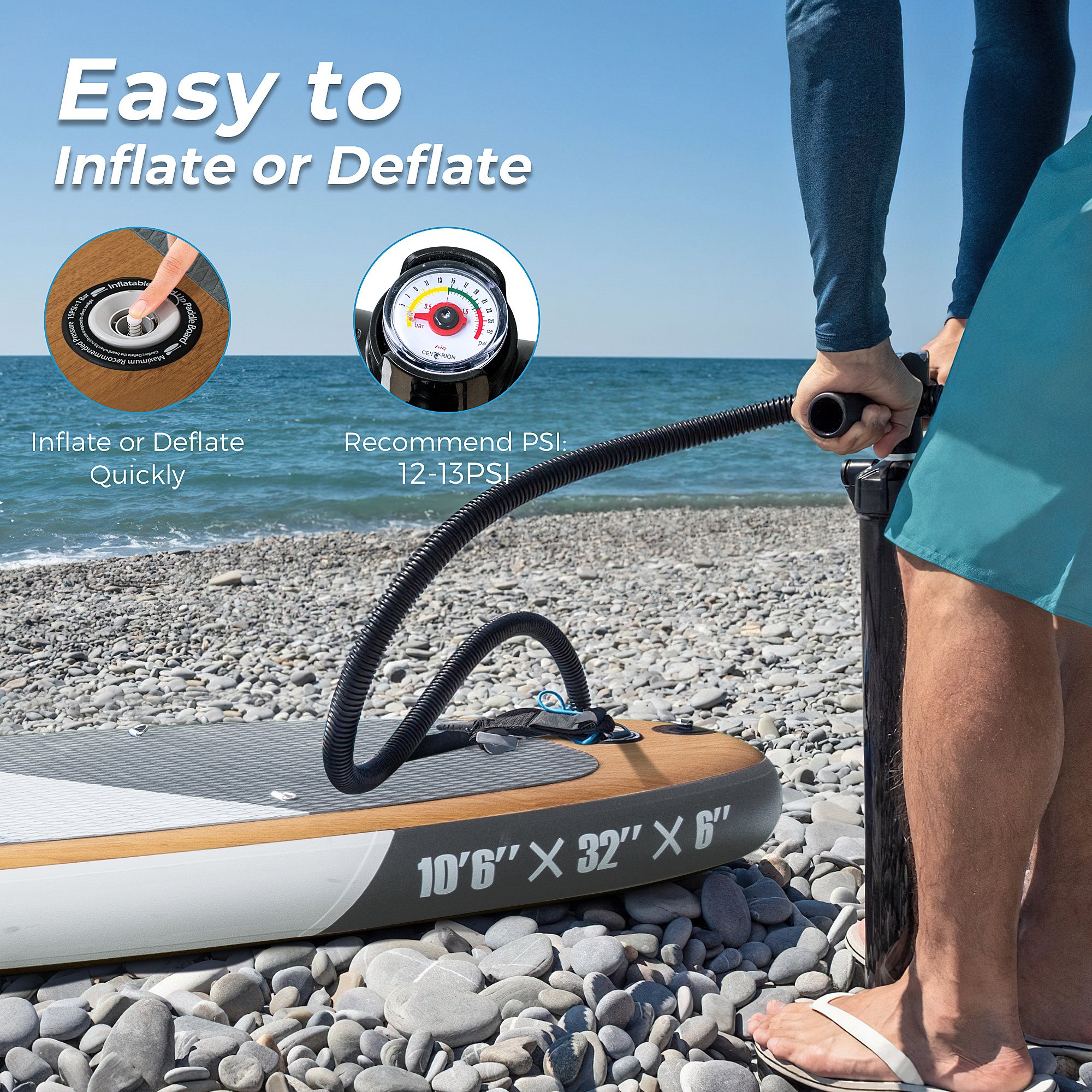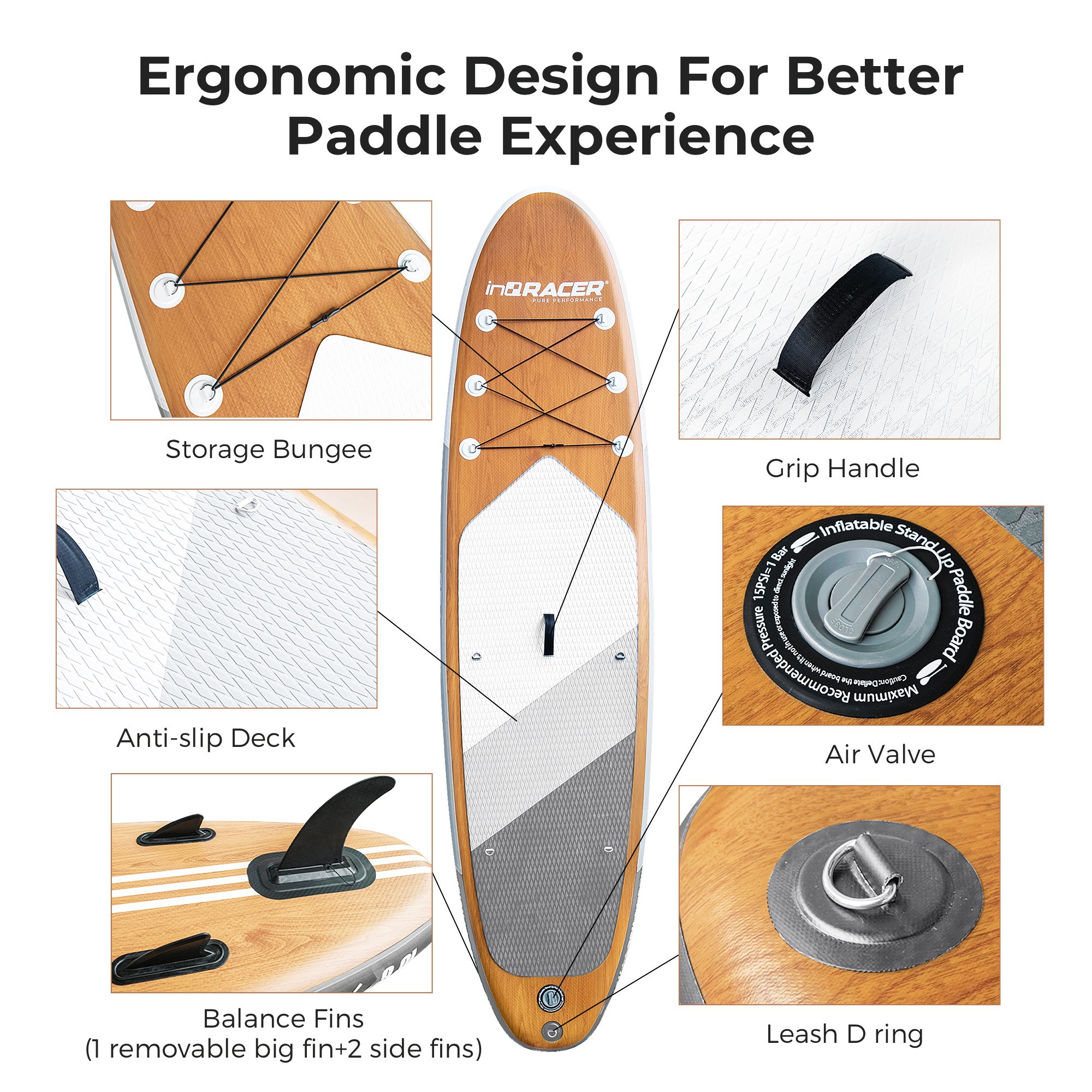 Extra Wide Design: Easy to stand up and keep balance on this paddle board! The triple bottom balance SUP fins and the sporty shape of the paddle board also allow for a fast-tracking easy steering experience which is similar to a rigid surfboard. It is an ideal all-around paddle board for adults; teens; youth; and pets of all skill levels.