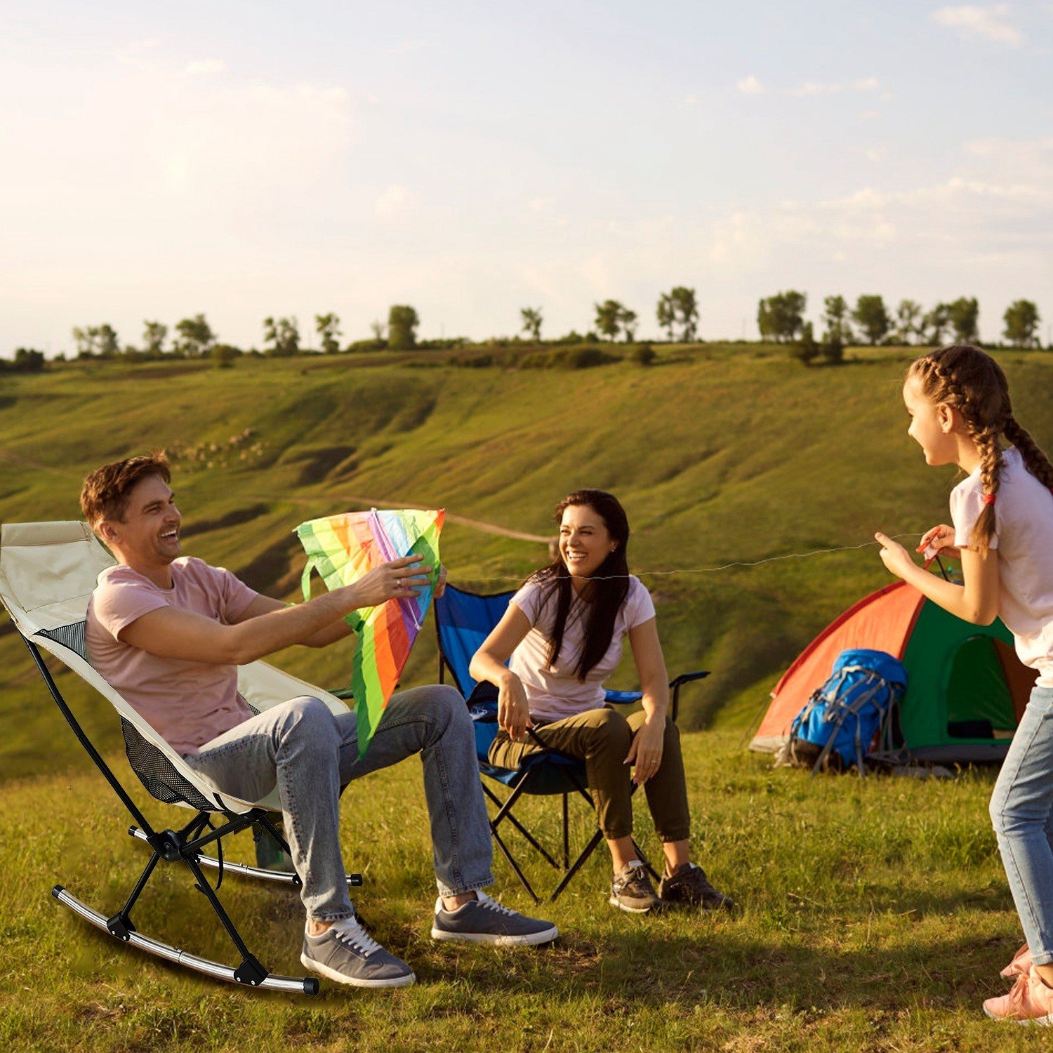 *Wide Applications*:This portable camping rocking chair is perfectly suitable for camping, picnic, sports event, BBQ, hiking, fishing, beach or just for relaxing at your backyard. And an ideal gift for your friends who are outdoor enthusiasts.