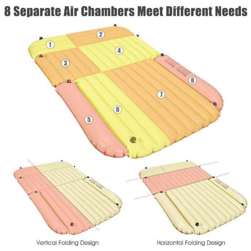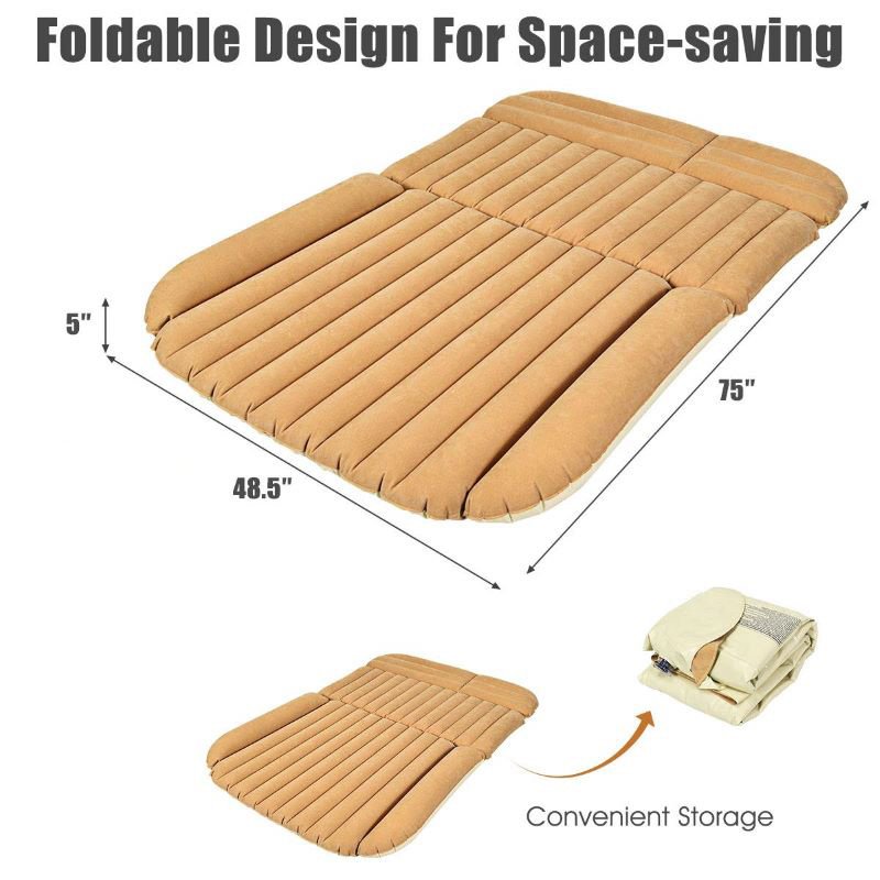 Folding part of the bags, our air bed can be placed at the rear seat with the help of an auxiliary airbag (not included).