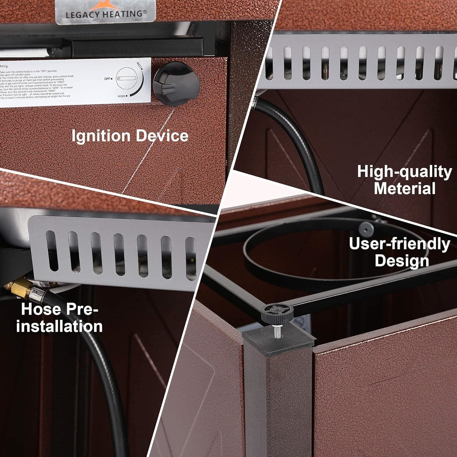 3. Easy Assemble: Need a 20 lbs propane tank to use (not included in the product). Detailed instructions and assemble videos are included. Make it possible for two people to assemble the propane fire pit table easily.