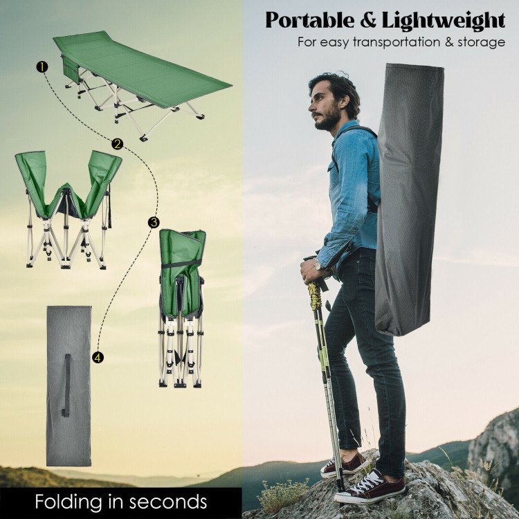 ● Easy Folding and Carrying: The lightweight and portable sleeping bed can be folded and unfolded in seconds with no tools required, and designed with a carrying bag for convenient storage and transportation. Besides, there exists a spacious side storage pocket to store your water bottles, phones, keys, sunglasses, books, and more.