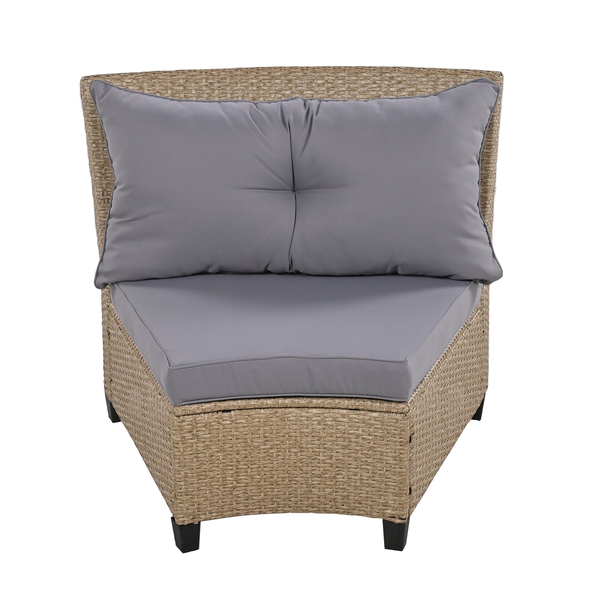 [VIDEO provided] 6 - Person Fan-shaped Rattan Suit Combination with Cushions and Table,Suitable for Garden