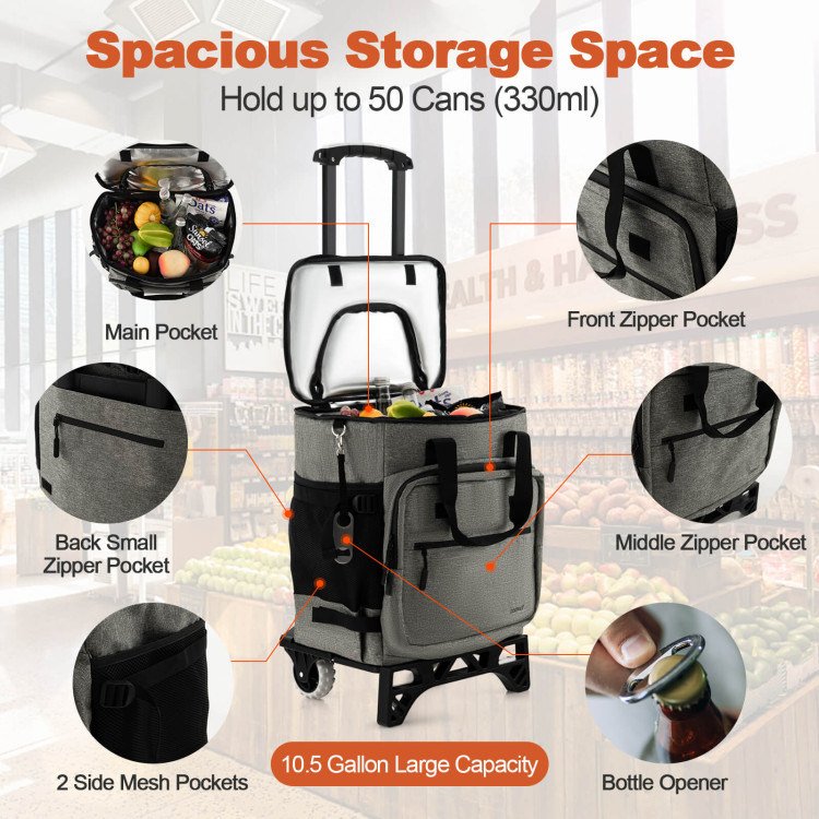 4.Super Easy to Carry and Move: The portable handle of the soft cooler bag allows you to effortlessly carry it. Apart from that, we also design it with 2 durable wheels for easy movement. Thanks to its portable design and light weight, it will be an ideal choice for shopping, camping or picnic.