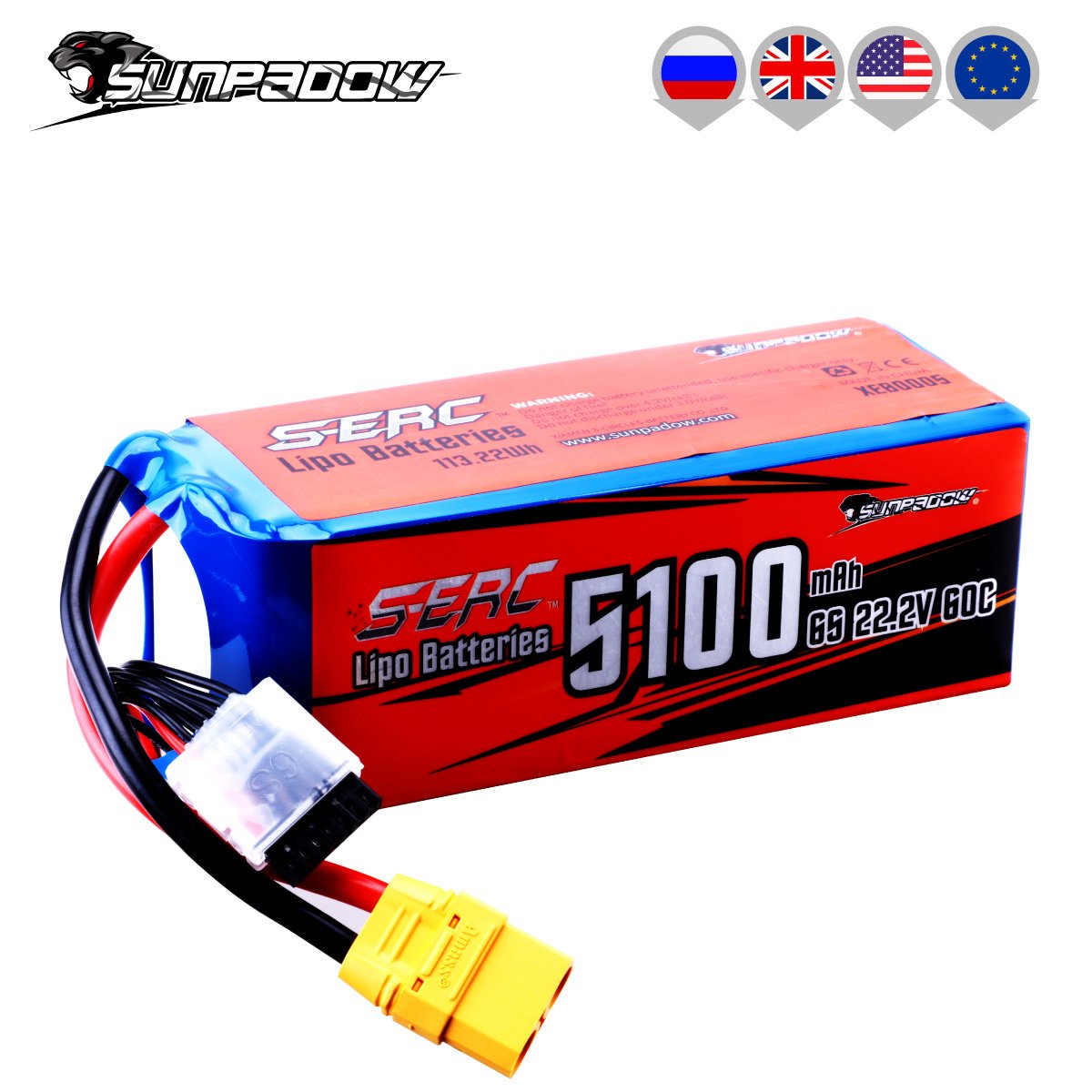 SUNPADOW 6S RC Lipo Battery 22.2V 60C 5100mAh with XT90 Connector for RC Airplane Aircraft Quadcopter Drone FPV Helicopter